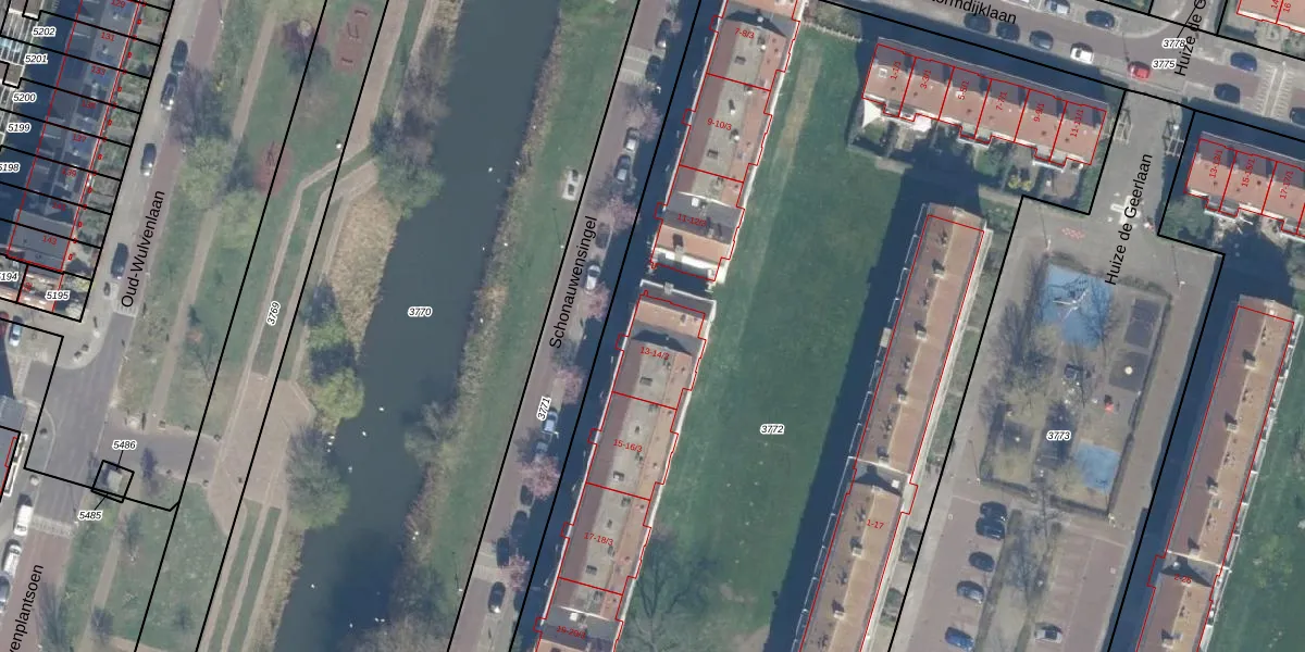 Het perceel waarop Schonauwensingel 13-2 staat heeft een oppervlakte van 8530 m². Dit is een zeer groot perceel. De perceeloppervlakte wordt geregistreerd door het Kadaster. Gedetailleerde informatie over de maten van dit perceel kunt u vinden in het rapport Kadastrale kaart met maatvoering van Schonauwensingel 13-2.