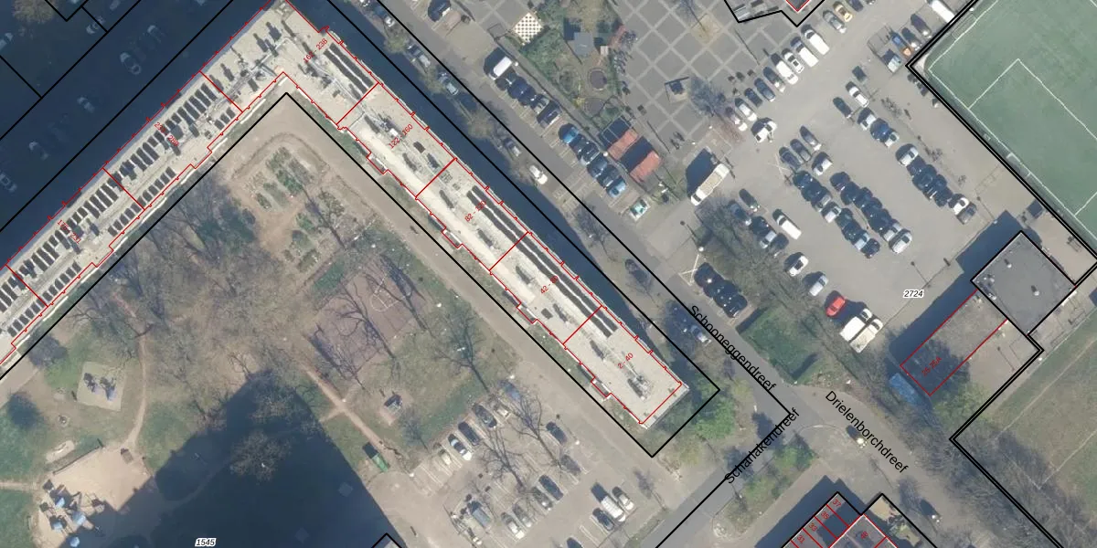 Het perceel waarop Schooneggendreef 80 staat heeft een oppervlakte van 4556 m². Dit is een zeer groot perceel. De perceeloppervlakte wordt geregistreerd door het Kadaster. Gedetailleerde informatie over de maten van dit perceel kunt u vinden in het rapport Kadastrale kaart met maatvoering van Schooneggendreef 80.