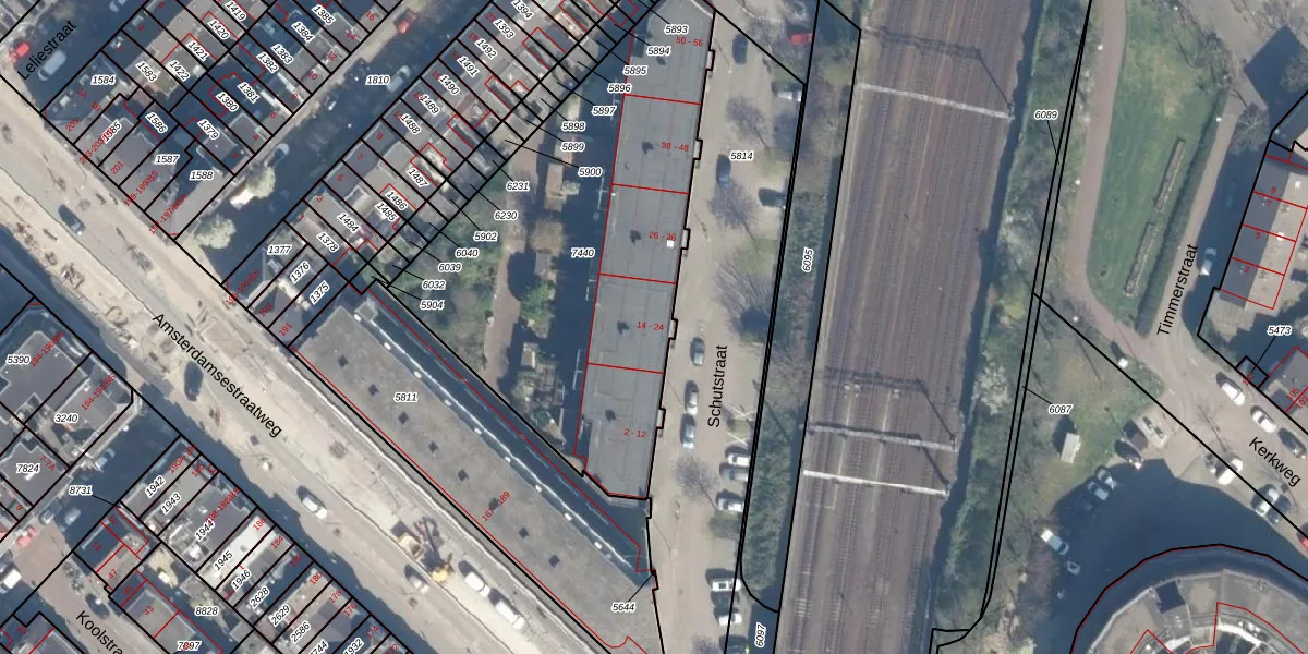 Het perceel waarop Schutstraat 24 staat heeft een oppervlakte van 1982 m². Dit is een zeer groot perceel. De perceeloppervlakte wordt geregistreerd door het Kadaster. Gedetailleerde informatie over de maten van dit perceel kunt u vinden in het rapport Kadastrale kaart met maatvoering van Schutstraat 24.