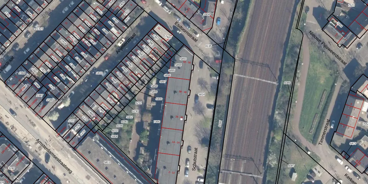Het perceel waarop Schutstraat 44 staat heeft een oppervlakte van 1982 m². Dit is een zeer groot perceel. De perceeloppervlakte wordt geregistreerd door het Kadaster. Gedetailleerde informatie over de maten van dit perceel kunt u vinden in het rapport Kadastrale kaart met maatvoering van Schutstraat 44.
