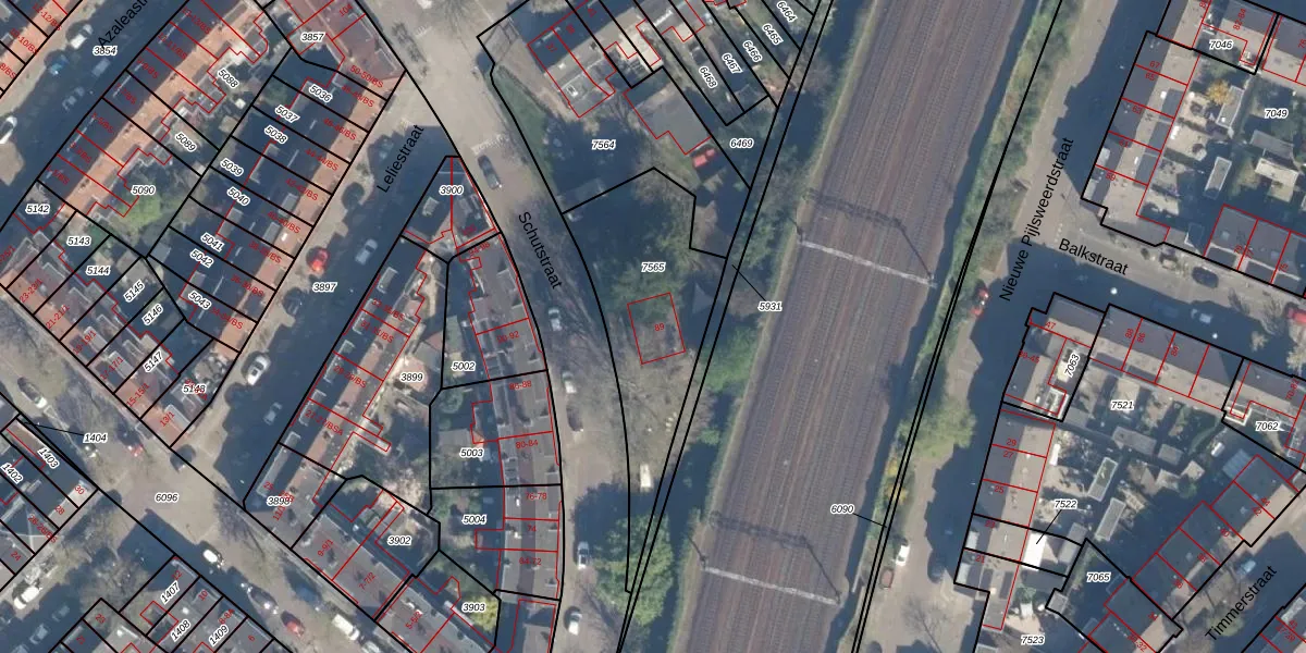Het perceel waarop Schutstraat 89 staat heeft een oppervlakte van 690 m². Dit is een groot perceel. De perceeloppervlakte wordt geregistreerd door het Kadaster. Gedetailleerde informatie over de maten van dit perceel kunt u vinden in het rapport Kadastrale kaart met maatvoering van Schutstraat 89.