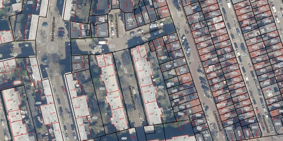 Het perceel waarop Semarangstraat 27 staat heeft een oppervlakte van 1075 m². Dit is een zeer groot perceel. De perceeloppervlakte wordt geregistreerd door het Kadaster. Gedetailleerde informatie over de maten van dit perceel kunt u vinden in het rapport Kadastrale kaart met maatvoering van Semarangstraat 27.