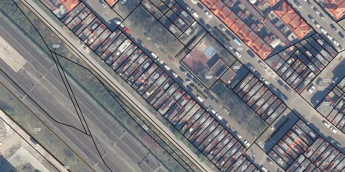 Gebruik de zoekbalk of klik op een perceel voor informatie over de adressen binnen dit perceel.