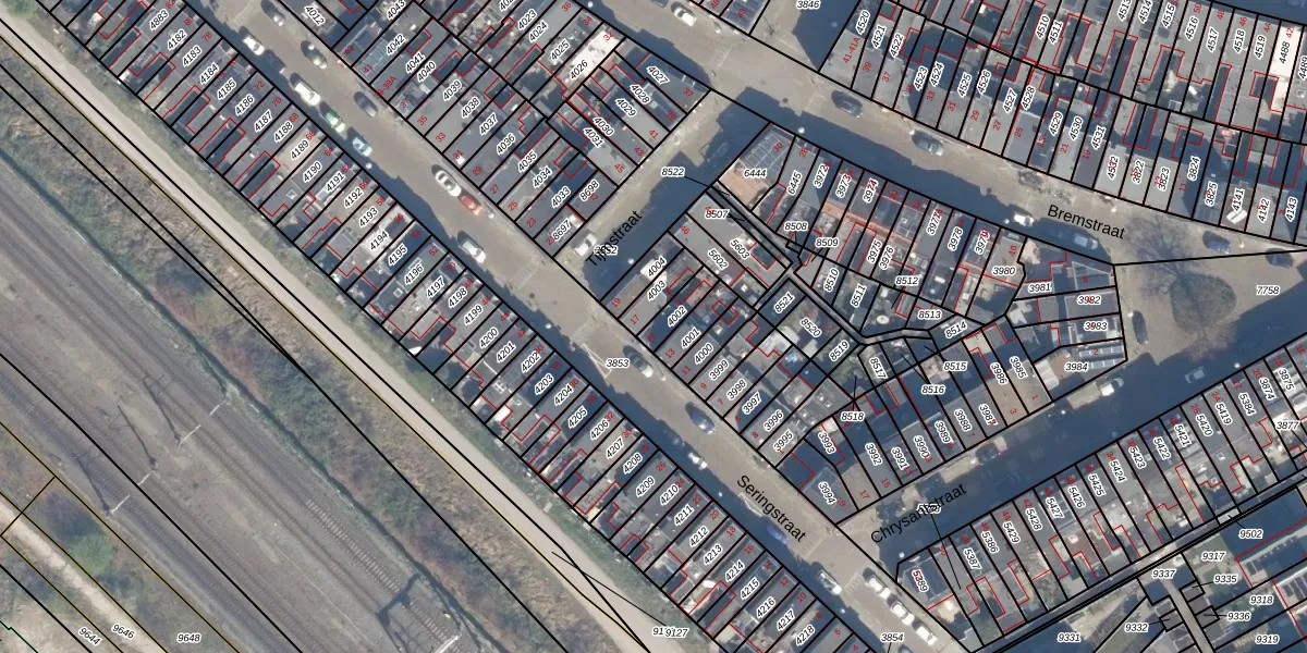 Seringstraat 15 is gelegen op kadastraal perceel CTR00B4002. Deze kadastrale aanduiding is uniek en wordt gebruikt door het Kadaster om eigendomsrechten en andere zakelijke rechten vast te leggen. Het perceel maakt onderdeel uit van de kadastrale gemeente Catharijne.