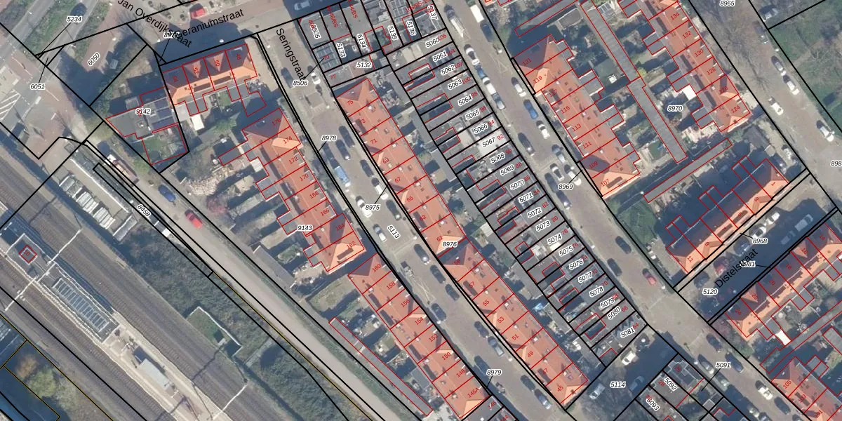 Seringstraat 63 is gelegen op kadastraal perceel CTR00B8976. Deze kadastrale aanduiding is uniek en wordt gebruikt door het Kadaster om eigendomsrechten en andere zakelijke rechten vast te leggen. Het perceel maakt onderdeel uit van de kadastrale gemeente Catharijne.