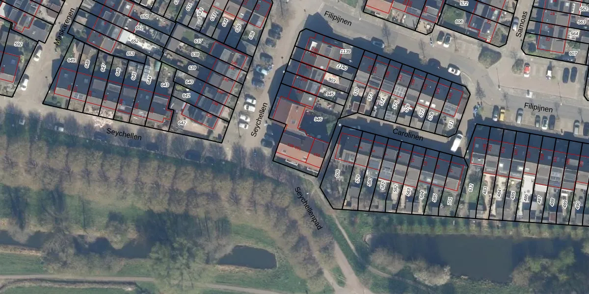 Het perceel waarop Seychellen 149 staat heeft een oppervlakte van 495 m². Dit is een groot perceel. De perceeloppervlakte wordt geregistreerd door het Kadaster. Gedetailleerde informatie over de maten van dit perceel kunt u vinden in het rapport Kadastrale kaart met maatvoering van Seychellen 149.