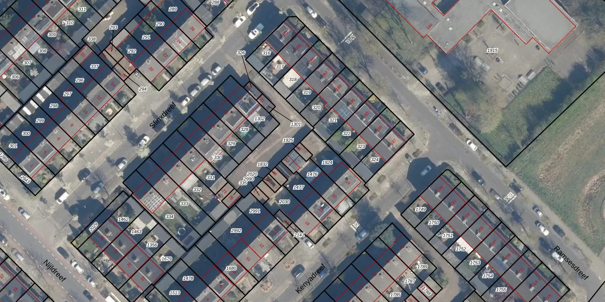 Het perceel waarop Sfinxdreef 41 staat heeft een oppervlakte van 18 m². Dit is een klein perceel. De perceeloppervlakte wordt geregistreerd door het Kadaster. Gedetailleerde informatie over de maten van dit perceel kunt u vinden in het rapport Kadastrale kaart met maatvoering van Sfinxdreef 41.