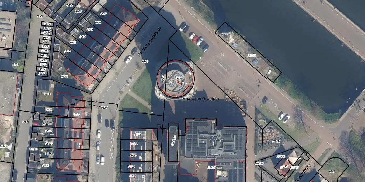 Shakespeareplein 2 is gelegen op kadastraal perceel CTR00C9866. Deze kadastrale aanduiding is uniek en wordt gebruikt door het Kadaster om eigendomsrechten en andere zakelijke rechten vast te leggen. Het perceel maakt onderdeel uit van de kadastrale gemeente Catharijne.