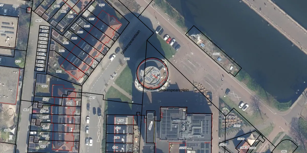 Shakespeareplein 7 is gelegen op kadastraal perceel CTR00C9866. Deze kadastrale aanduiding is uniek en wordt gebruikt door het Kadaster om eigendomsrechten en andere zakelijke rechten vast te leggen. Het perceel maakt onderdeel uit van de kadastrale gemeente Catharijne.