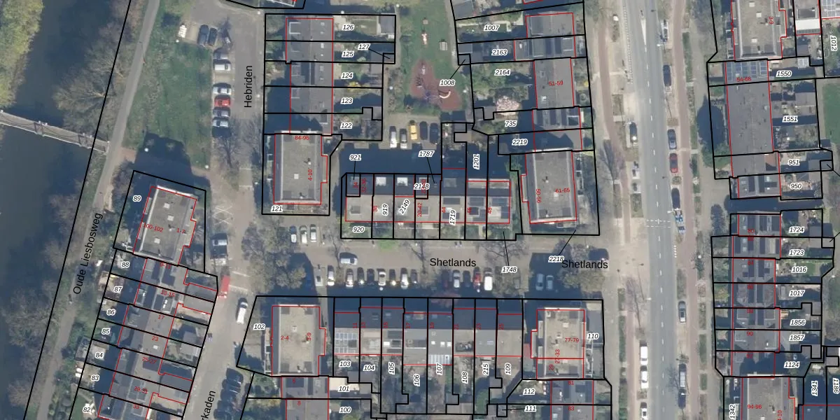 Het perceel waarop Shetlands 42 staat heeft een oppervlakte van 75 m². Dit is een klein perceel. De perceeloppervlakte wordt geregistreerd door het Kadaster. Gedetailleerde informatie over de maten van dit perceel kunt u vinden in het rapport Kadastrale kaart met maatvoering van Shetlands 42.
