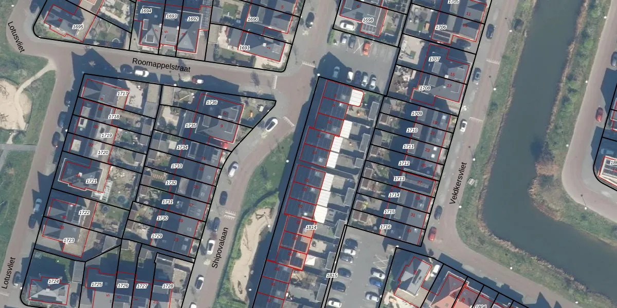Het perceel waarop Shipovalaan 14 staat heeft een oppervlakte van 2072 m². Dit is een zeer groot perceel. De perceeloppervlakte wordt geregistreerd door het Kadaster. Gedetailleerde informatie over de maten van dit perceel kunt u vinden in het rapport Kadastrale kaart met maatvoering van Shipovalaan 14.