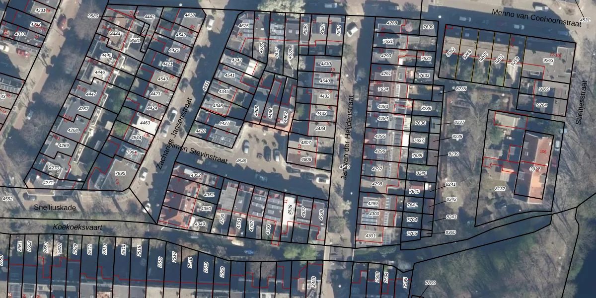 Gebruik de zoekbalk of klik op een perceel voor informatie over de adressen binnen dit perceel.