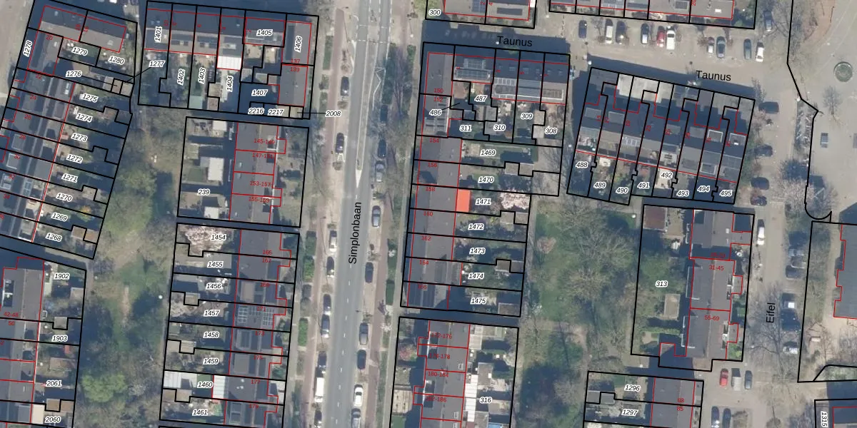 Simplonbaan 160 is gelegen op kadastraal perceel UTT00U1472. Deze kadastrale aanduiding is uniek en wordt gebruikt door het Kadaster om eigendomsrechten en andere zakelijke rechten vast te leggen. Het perceel maakt onderdeel uit van de kadastrale gemeente Utrecht.
