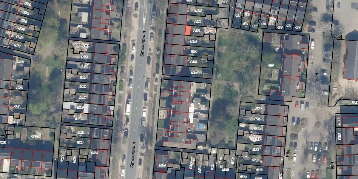 Simplonbaan 172 is gelegen op kadastraal perceel UTT00U316. Deze kadastrale aanduiding is uniek en wordt gebruikt door het Kadaster om eigendomsrechten en andere zakelijke rechten vast te leggen. Het perceel maakt onderdeel uit van de kadastrale gemeente Utrecht.