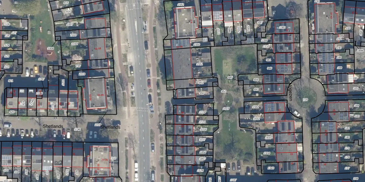 Gebruik de zoekbalk of klik op een perceel voor informatie over de adressen binnen dit perceel.