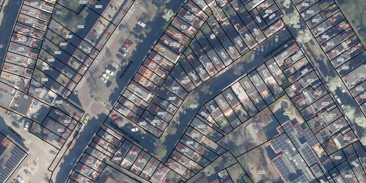 Het perceel waarop Singeldwarsstraat 21 staat heeft een oppervlakte van 92 m². Dit is een klein perceel. De perceeloppervlakte wordt geregistreerd door het Kadaster. Gedetailleerde informatie over de maten van dit perceel kunt u vinden in het rapport Kadastrale kaart met maatvoering van Singeldwarsstraat 21.