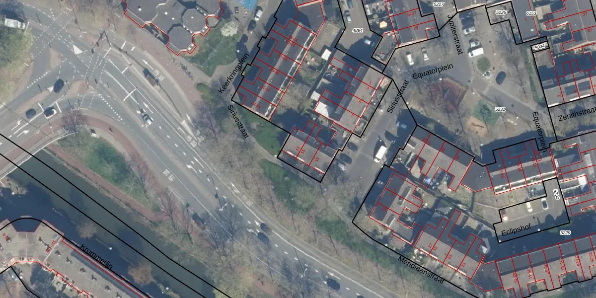 Het perceel waarop Siriusstraat 17 staat heeft een oppervlakte van 4284 m². Dit is een zeer groot perceel. De perceeloppervlakte wordt geregistreerd door het Kadaster. Gedetailleerde informatie over de maten van dit perceel kunt u vinden in het rapport Kadastrale kaart met maatvoering van Siriusstraat 17.