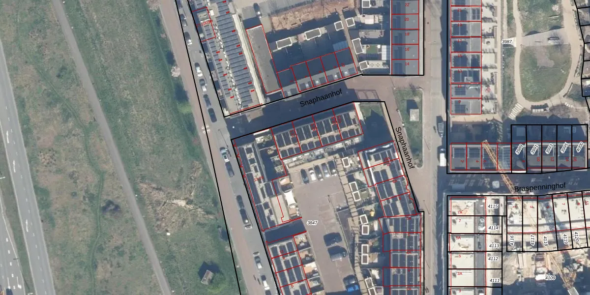 Het perceel waarop Snaphaanhof 11 staat heeft een oppervlakte van 4100 m². Dit is een zeer groot perceel. De perceeloppervlakte wordt geregistreerd door het Kadaster. Gedetailleerde informatie over de maten van dit perceel kunt u vinden in het rapport Kadastrale kaart met maatvoering van Snaphaanhof 11.