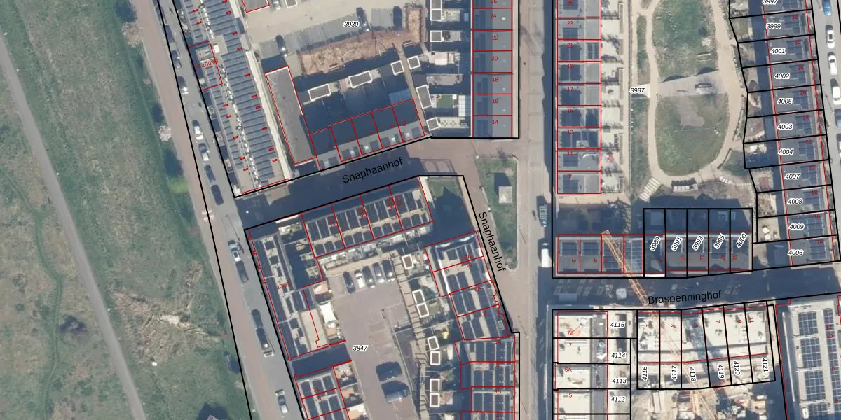 Het perceel waarop Snaphaanhof 23 staat heeft een oppervlakte van 4100 m². Dit is een zeer groot perceel. De perceeloppervlakte wordt geregistreerd door het Kadaster. Gedetailleerde informatie over de maten van dit perceel kunt u vinden in het rapport Kadastrale kaart met maatvoering van Snaphaanhof 23.