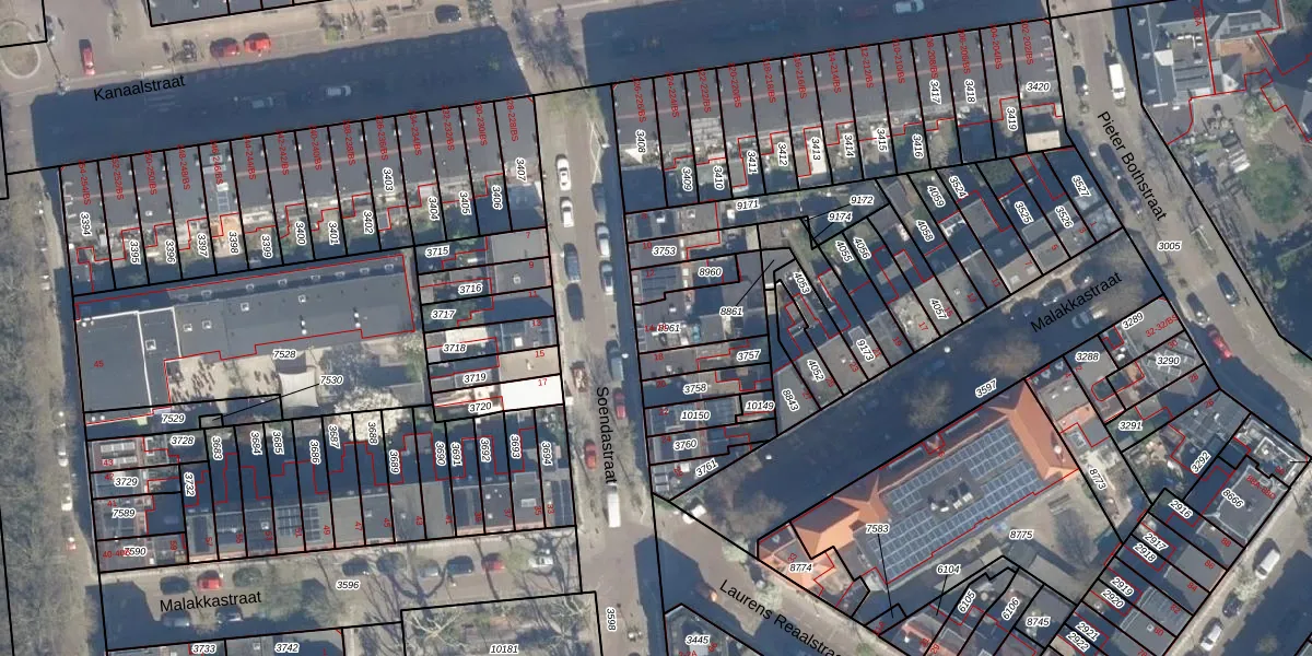 Het perceel waarop Soendastraat 16 staat heeft een oppervlakte van 180 m². Dit is een middelgroot perceel. De perceeloppervlakte wordt geregistreerd door het Kadaster. Gedetailleerde informatie over de maten van dit perceel kunt u vinden in het rapport Kadastrale kaart met maatvoering van Soendastraat 16.
