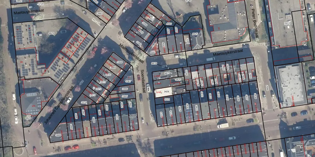Het perceel waarop Soendastraat 2 staat heeft een oppervlakte van 90 m². Dit is een klein perceel. De perceeloppervlakte wordt geregistreerd door het Kadaster. Gedetailleerde informatie over de maten van dit perceel kunt u vinden in het rapport Kadastrale kaart met maatvoering van Soendastraat 2.