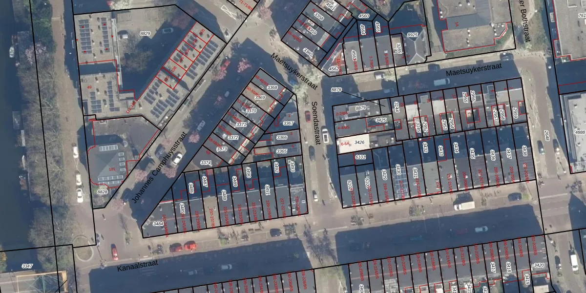 Het perceel waarop Soendastraat 5 staat heeft een oppervlakte van 85 m². Dit is een klein perceel. De perceeloppervlakte wordt geregistreerd door het Kadaster. Gedetailleerde informatie over de maten van dit perceel kunt u vinden in het rapport Kadastrale kaart met maatvoering van Soendastraat 5.