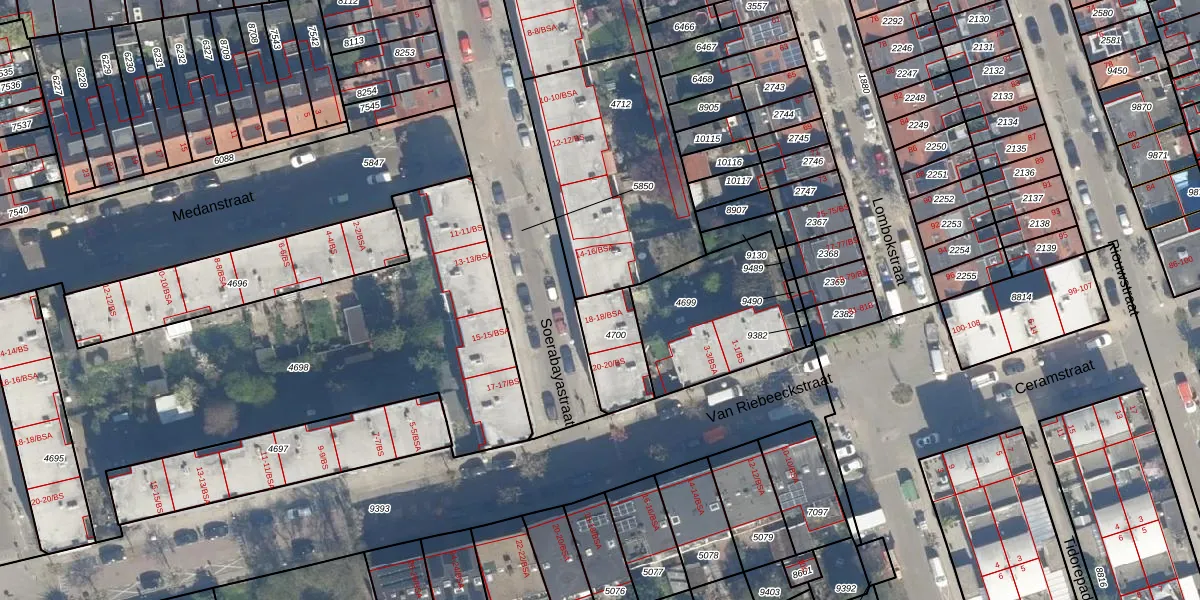 Soerabayastraat 18 is gelegen op kadastraal perceel CTR00C4700. Deze kadastrale aanduiding is uniek en wordt gebruikt door het Kadaster om eigendomsrechten en andere zakelijke rechten vast te leggen. Het perceel maakt onderdeel uit van de kadastrale gemeente Catharijne.