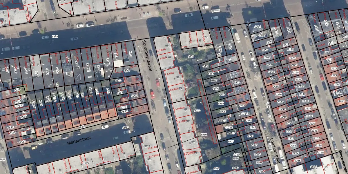 Het perceel waarop Soerabayastraat 8 staat heeft een oppervlakte van 864 m². Dit is een groot perceel. De perceeloppervlakte wordt geregistreerd door het Kadaster. Gedetailleerde informatie over de maten van dit perceel kunt u vinden in het rapport Kadastrale kaart met maatvoering van Soerabayastraat 8.