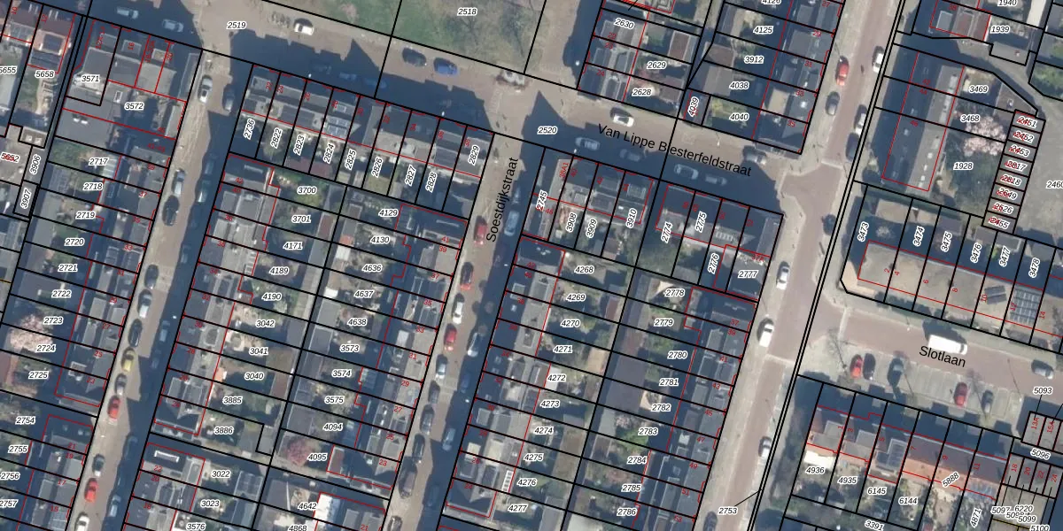 Gebruik de zoekbalk of klik op een perceel voor informatie over de adressen binnen dit perceel.