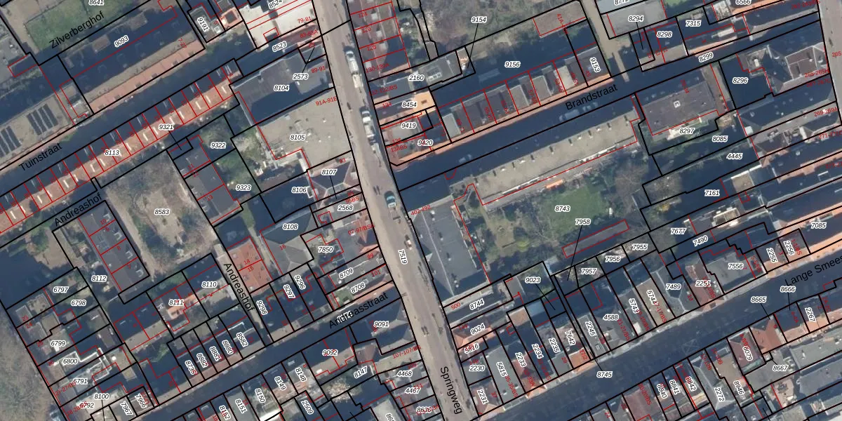 Het perceel waarop Springweg 414 staat heeft een oppervlakte van 1735 m². Dit is een zeer groot perceel. De perceeloppervlakte wordt geregistreerd door het Kadaster. Gedetailleerde informatie over de maten van dit perceel kunt u vinden in het rapport Kadastrale kaart met maatvoering van Springweg 414.