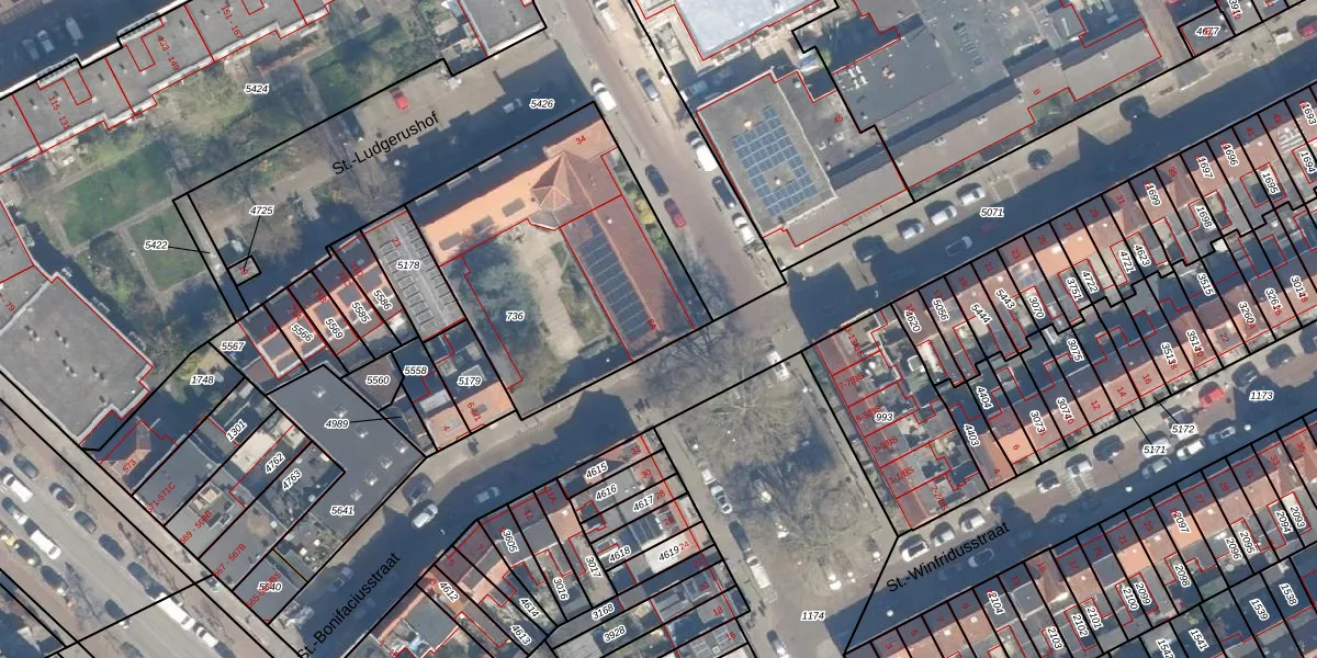 Het perceel waarop St.-Bonifaciusstraat 6-A staat heeft een oppervlakte van 1230 m². Dit is een zeer groot perceel. De perceeloppervlakte wordt geregistreerd door het Kadaster. Gedetailleerde informatie over de maten van dit perceel kunt u vinden in het rapport Kadastrale kaart met maatvoering van St.-Bonifaciusstraat 6-A.