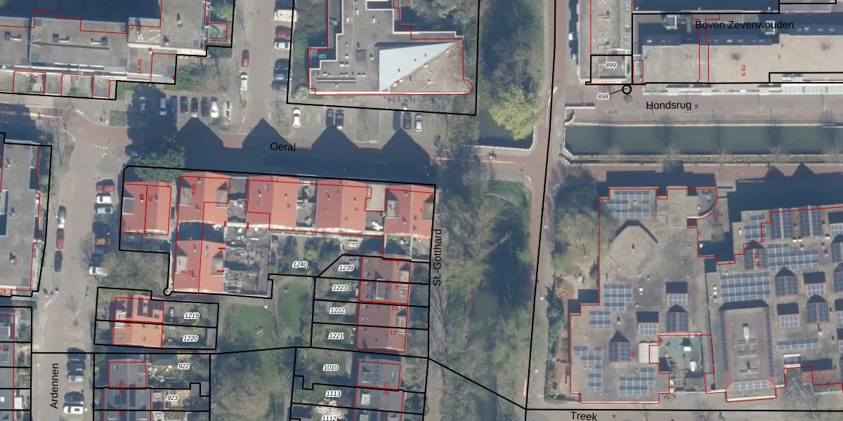 St.-Gotthard 1 is gelegen op kadastraal perceel UTT00U1240. Deze kadastrale aanduiding is uniek en wordt gebruikt door het Kadaster om eigendomsrechten en andere zakelijke rechten vast te leggen. Het perceel maakt onderdeel uit van de kadastrale gemeente Utrecht.