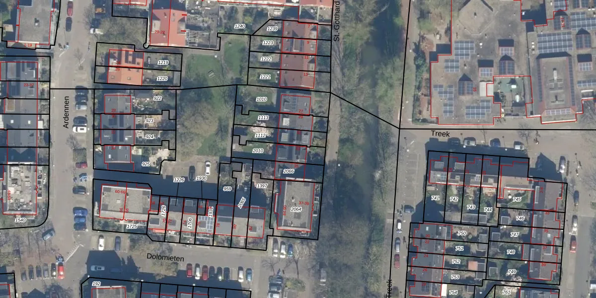 Het perceel waarop St.-Gotthard 33 staat heeft een oppervlakte van 188 m². Dit is een middelgroot perceel. De perceeloppervlakte wordt geregistreerd door het Kadaster. Gedetailleerde informatie over de maten van dit perceel kunt u vinden in het rapport Kadastrale kaart met maatvoering van St.-Gotthard 33.