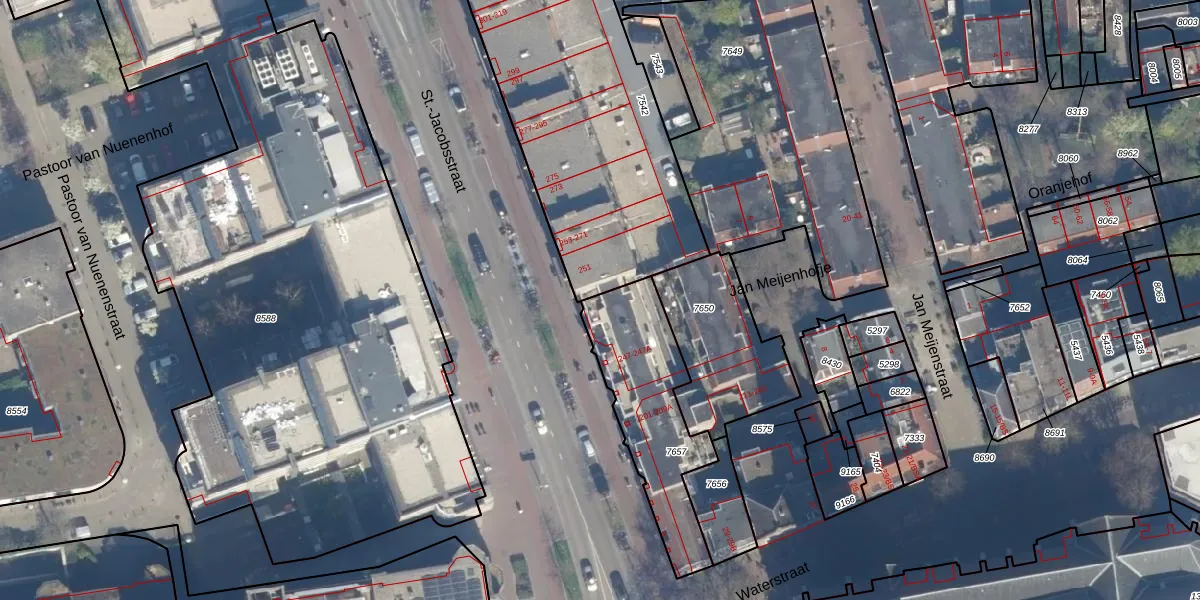 Het perceel waarop St.-Jacobsstraat 247 staat heeft een oppervlakte van 520 m². Dit is een groot perceel. De perceeloppervlakte wordt geregistreerd door het Kadaster. Gedetailleerde informatie over de maten van dit perceel kunt u vinden in het rapport Kadastrale kaart met maatvoering van St.-Jacobsstraat 247.