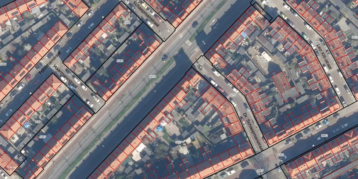 Het perceel waarop St.-Josephlaan 32 staat heeft een oppervlakte van 4283 m². Dit is een zeer groot perceel. De perceeloppervlakte wordt geregistreerd door het Kadaster. Gedetailleerde informatie over de maten van dit perceel kunt u vinden in het rapport Kadastrale kaart met maatvoering van St.-Josephlaan 32.