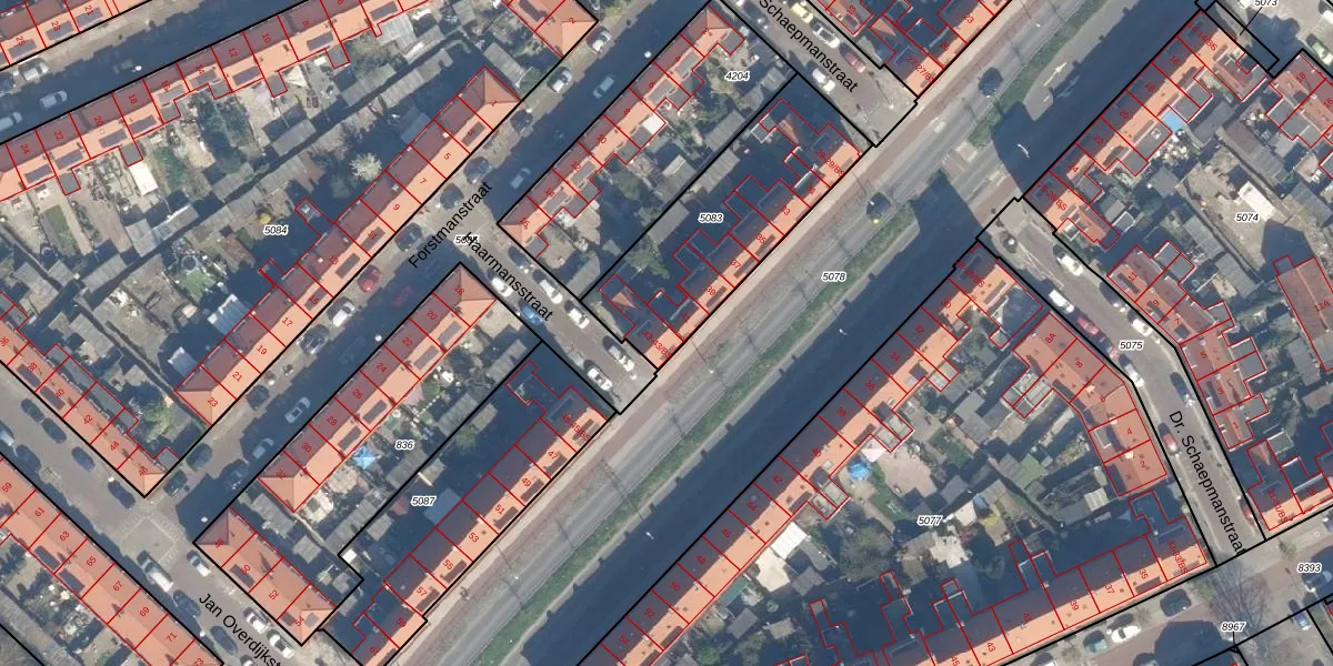 Het perceel waarop St.-Josephlaan 43 staat heeft een oppervlakte van 722 m². Dit is een groot perceel. De perceeloppervlakte wordt geregistreerd door het Kadaster. Gedetailleerde informatie over de maten van dit perceel kunt u vinden in het rapport Kadastrale kaart met maatvoering van St.-Josephlaan 43.