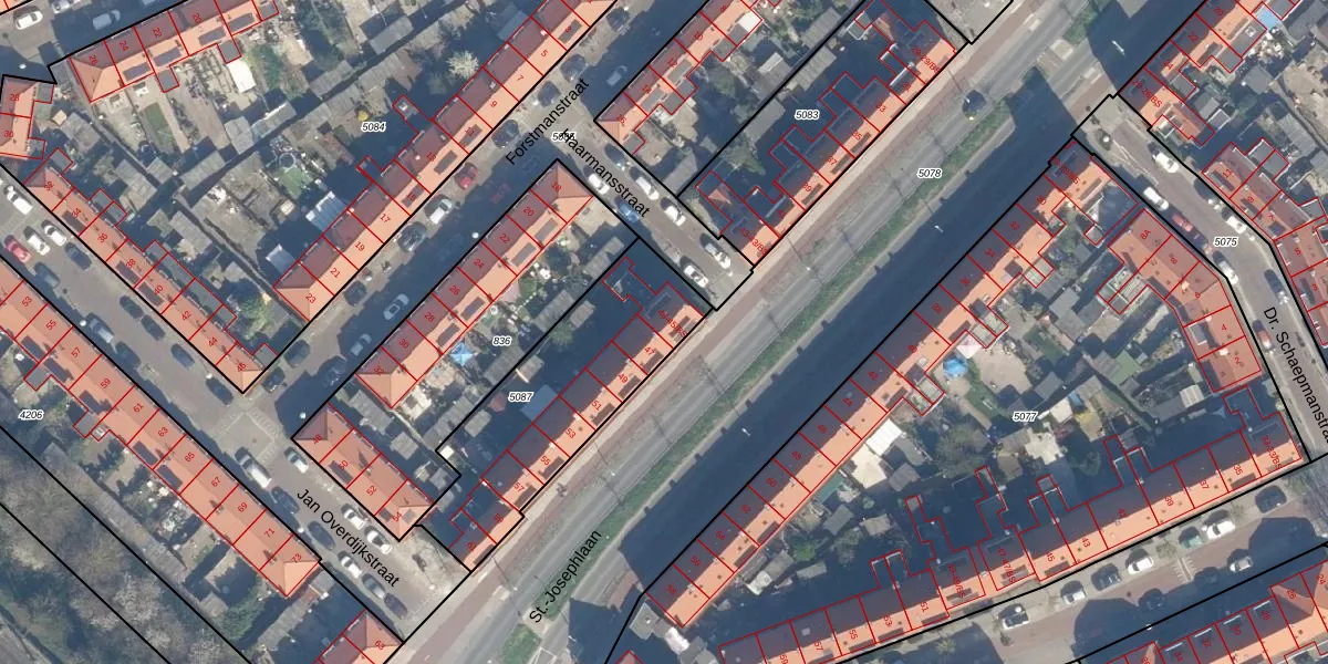 St.-Josephlaan 45 is gelegen op kadastraal perceel ZLN02C5087. Deze kadastrale aanduiding is uniek en wordt gebruikt door het Kadaster om eigendomsrechten en andere zakelijke rechten vast te leggen. Het perceel maakt onderdeel uit van de kadastrale gemeente Zuilen.
