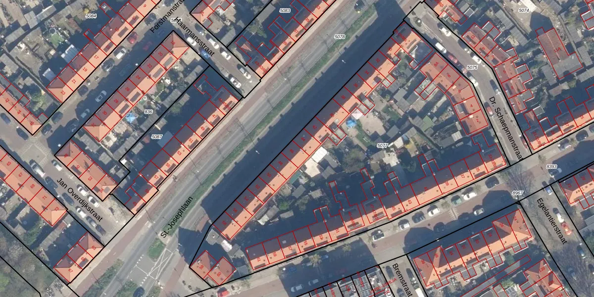 Het perceel waarop St.-Josephlaan 46 staat heeft een oppervlakte van 4283 m². Dit is een zeer groot perceel. De perceeloppervlakte wordt geregistreerd door het Kadaster. Gedetailleerde informatie over de maten van dit perceel kunt u vinden in het rapport Kadastrale kaart met maatvoering van St.-Josephlaan 46.