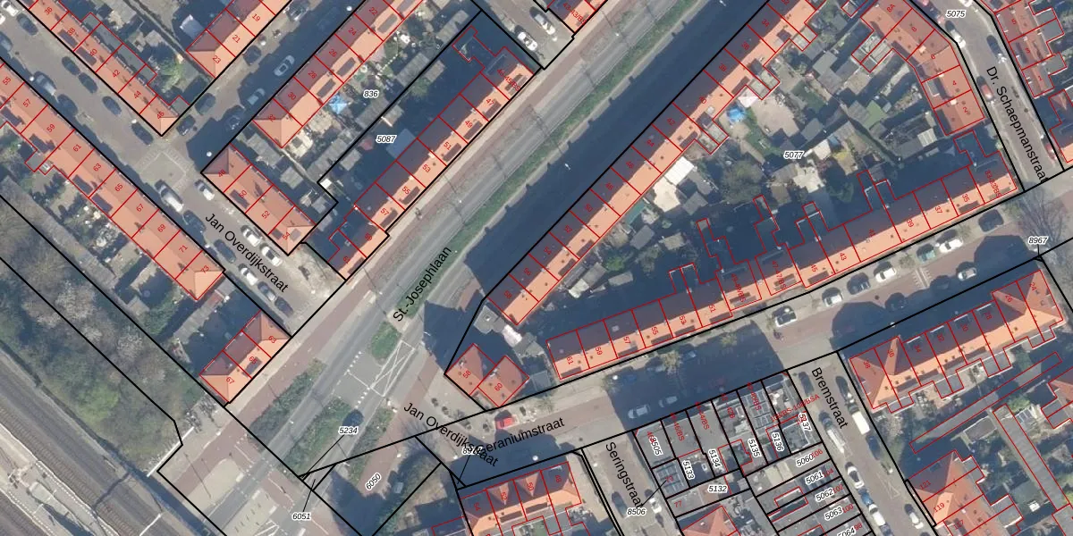 St.-Josephlaan 56 is gelegen op kadastraal perceel ZLN02C5077. Deze kadastrale aanduiding is uniek en wordt gebruikt door het Kadaster om eigendomsrechten en andere zakelijke rechten vast te leggen. Het perceel maakt onderdeel uit van de kadastrale gemeente Zuilen.