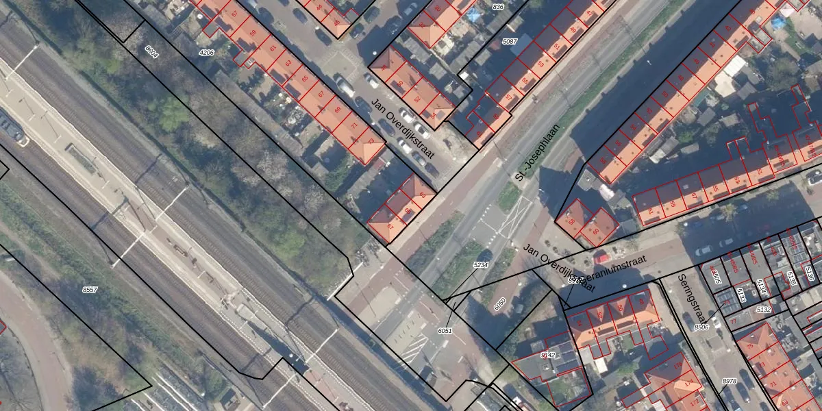 Het perceel waarop St.-Josephlaan 65 staat heeft een oppervlakte van 2086 m². Dit is een zeer groot perceel. De perceeloppervlakte wordt geregistreerd door het Kadaster. Gedetailleerde informatie over de maten van dit perceel kunt u vinden in het rapport Kadastrale kaart met maatvoering van St.-Josephlaan 65.