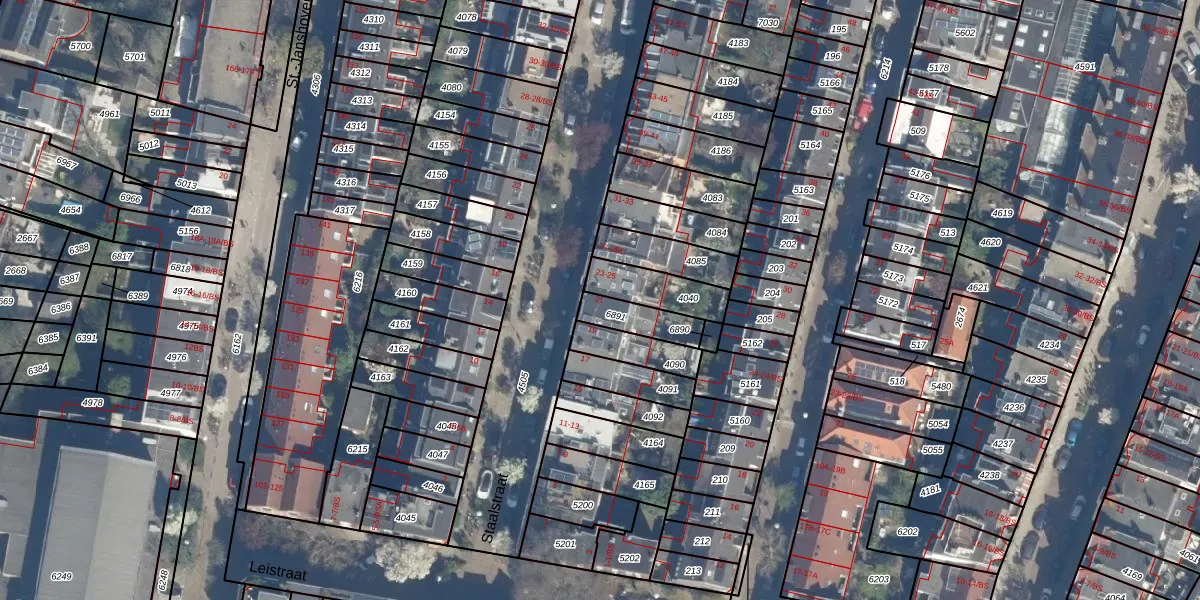 Staalstraat 21 is gelegen op kadastraal perceel ASD40B6891. Deze kadastrale aanduiding is uniek en wordt gebruikt door het Kadaster om eigendomsrechten en andere zakelijke rechten vast te leggen. Het perceel maakt onderdeel uit van de kadastrale gemeente Abstede.