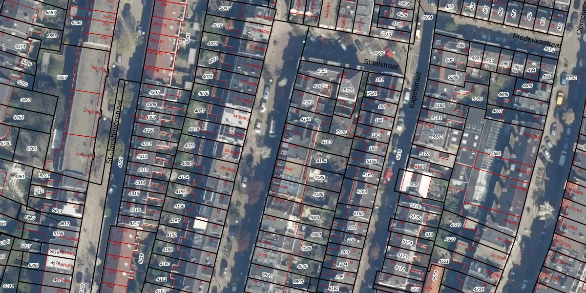 Staalstraat 49 is gelegen op kadastraal perceel ASD40B4184. Deze kadastrale aanduiding is uniek en wordt gebruikt door het Kadaster om eigendomsrechten en andere zakelijke rechten vast te leggen. Het perceel maakt onderdeel uit van de kadastrale gemeente Abstede.
