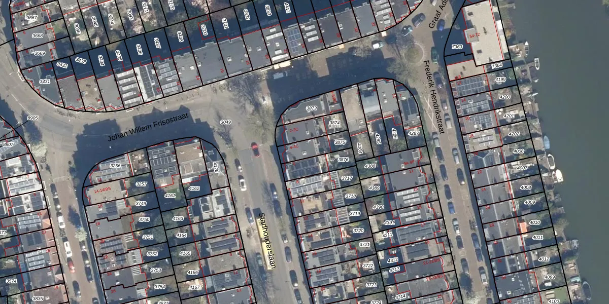 Stadhouderslaan 4-B is gelegen op kadastraal perceel ASD40C3875. Deze kadastrale aanduiding is uniek en wordt gebruikt door het Kadaster om eigendomsrechten en andere zakelijke rechten vast te leggen. Het perceel maakt onderdeel uit van de kadastrale gemeente Abstede.
