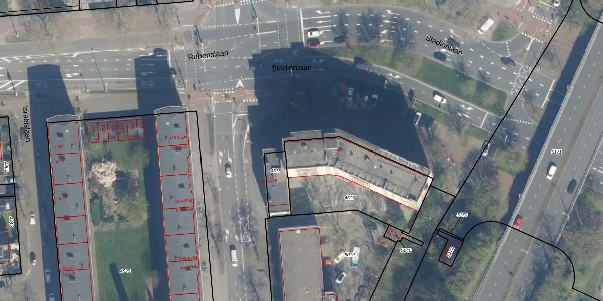 Stadionlaan 1-B is gelegen op kadastraal perceel ASD40D4517. Deze kadastrale aanduiding is uniek en wordt gebruikt door het Kadaster om eigendomsrechten en andere zakelijke rechten vast te leggen. Het perceel maakt onderdeel uit van de kadastrale gemeente Abstede.