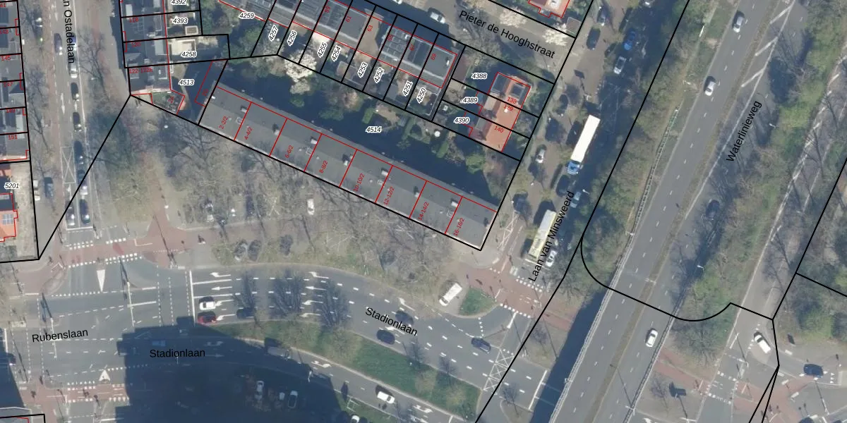 Het perceel waarop Stadionlaan 14-1 staat heeft een oppervlakte van 1655 m². Dit is een zeer groot perceel. De perceeloppervlakte wordt geregistreerd door het Kadaster. Gedetailleerde informatie over de maten van dit perceel kunt u vinden in het rapport Kadastrale kaart met maatvoering van Stadionlaan 14-1.