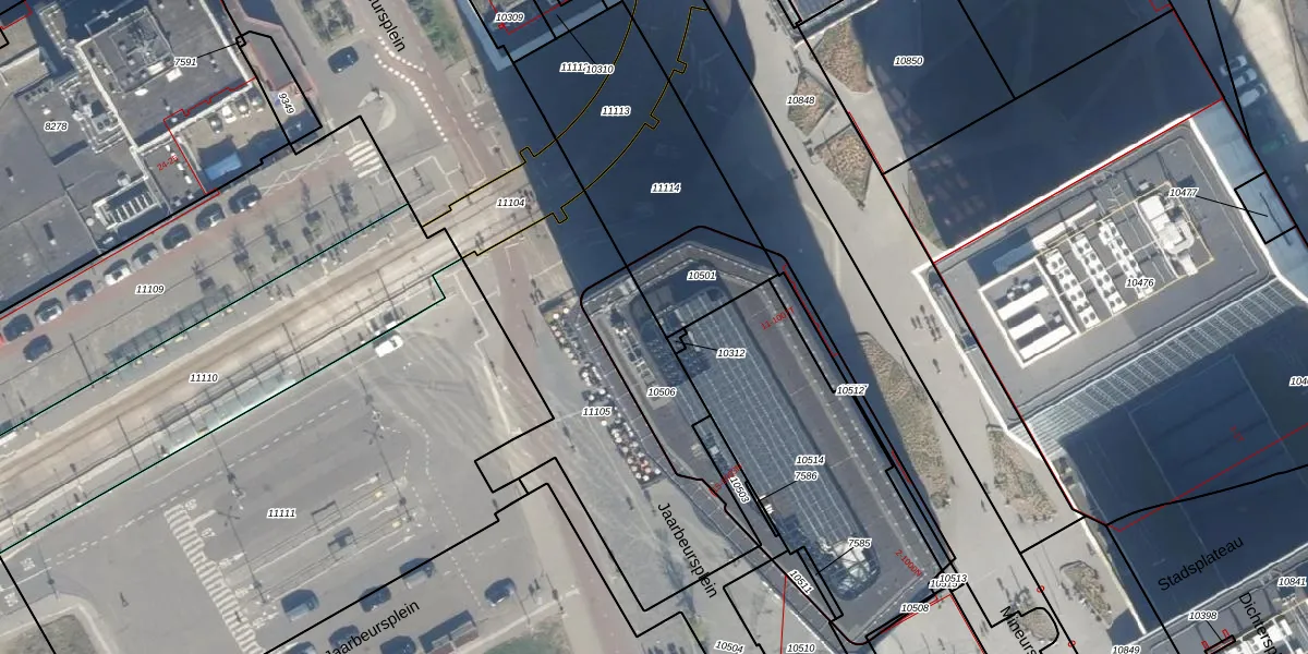 Stadsplateau 7 is gelegen op kadastraal perceel CTR00D10506. Deze kadastrale aanduiding is uniek en wordt gebruikt door het Kadaster om eigendomsrechten en andere zakelijke rechten vast te leggen. Het perceel maakt onderdeel uit van de kadastrale gemeente Catharijne.