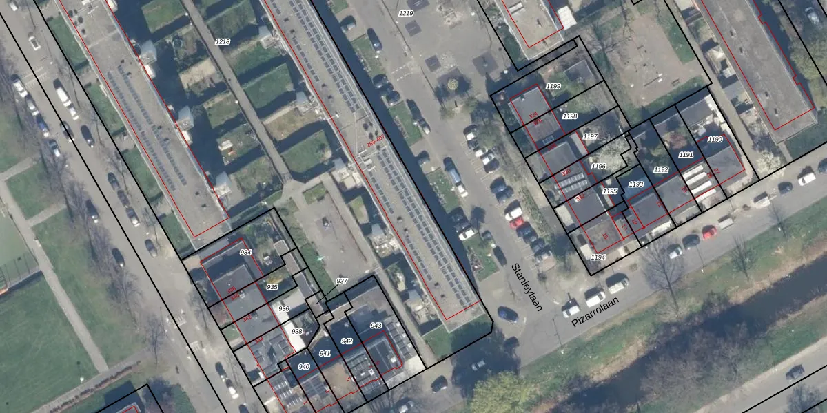 Het perceel waarop Stanleylaan 379 staat heeft een oppervlakte van 6853 m². Dit is een zeer groot perceel. De perceeloppervlakte wordt geregistreerd door het Kadaster. Gedetailleerde informatie over de maten van dit perceel kunt u vinden in het rapport Kadastrale kaart met maatvoering van Stanleylaan 379.