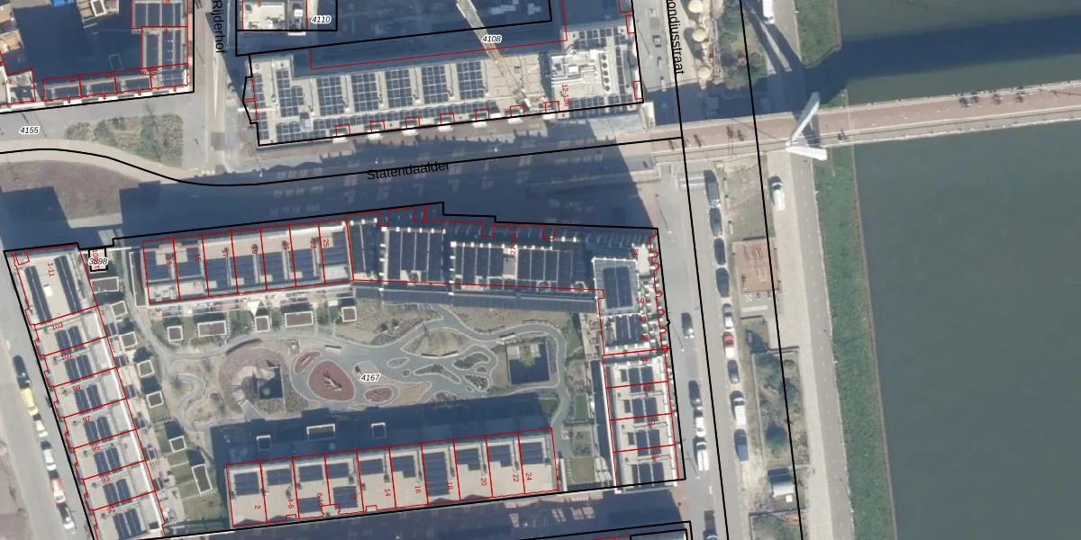 Statendaalder 97 is gelegen op kadastraal perceel CTR00F4167. Deze kadastrale aanduiding is uniek en wordt gebruikt door het Kadaster om eigendomsrechten en andere zakelijke rechten vast te leggen. Het perceel maakt onderdeel uit van de kadastrale gemeente Catharijne.