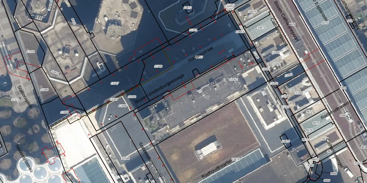 Het perceel waarop het adres ligt is CTR00-D-10262. De afkorting 'CTR00' staat voor kadastrale gemeente Catharijne. De oppervlakte van het perceel is 1482 m². Dat is groter dan gemiddeld in Catharijne, waar de gemiddelde perceeloppervlakte op 828,82 m² ligt. Het kleinste perceel in de kadastrale gemeente is 0 m² groot. De grootste perceeloppervlakte is 35,6 ha. Op het perceel liggen in totaal 94 adressen. In de Basisregistratie Kadaster (BRK) werden de grenzen van het perceel geregistreerd op 08-04-2024.