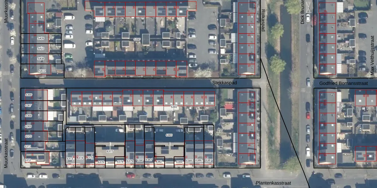 Stekkaspad 40 is gelegen op kadastraal perceel UTT00V5391. Deze kadastrale aanduiding is uniek en wordt gebruikt door het Kadaster om eigendomsrechten en andere zakelijke rechten vast te leggen. Het perceel maakt onderdeel uit van de kadastrale gemeente Utrecht.